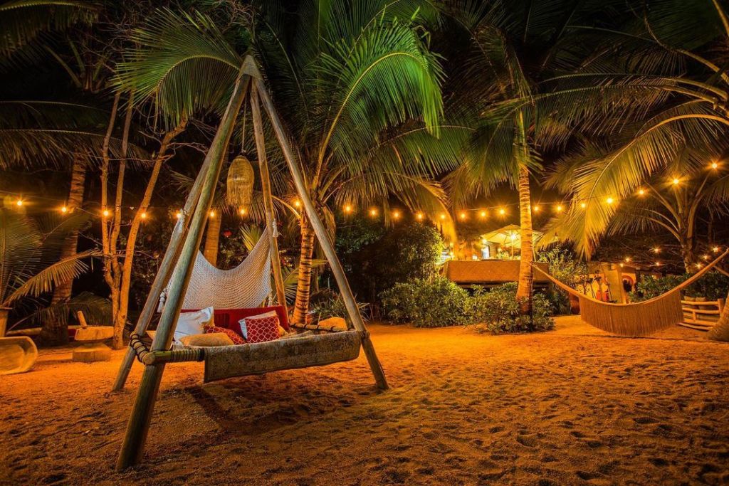 Entre tapetes con motivos étnicos, puffs, cojines, zonas lounge y elementos naturales por doquier, este sitio es el sitio ideal para disfrutar de un fin de semana totalmente fuera de lo común. Por si fuera poco, al caer la noche el lugar se transforma con miles de velas y un espectáculo único de luces láser bajo las estrellas, dando como resultado un escenario único.