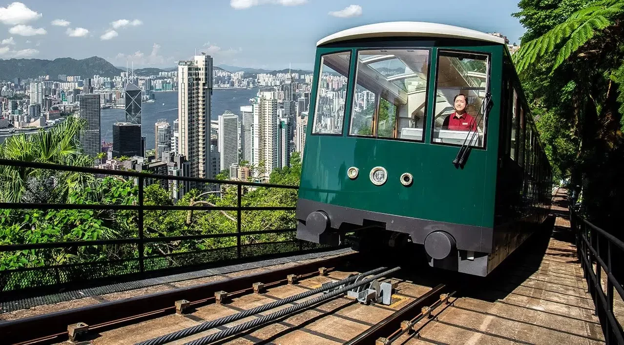 El tranvía Peak Tram de Hong Kong es uno de los funiculares más espectaculares del mundo. El funicular se construyó en 1888 para permitir a los residentes de Victoria Peak y a los huéspedes del Hotel Peak llegar a la cima del monte Austin, de 1.811 pies de altura, conocido localmente como The Peak. El viaje en funicular era un método más cómodo que el anterior: subir a pie en sillas de ruedas.
