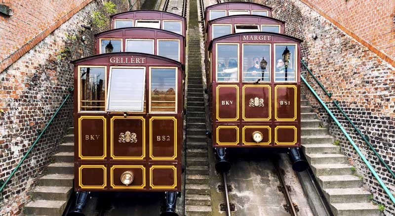 Este funicular, que data de 1870, es el segundo más antiguo de Europa, después del de Lyon, y uno de los más bonitos. El vagón tiene tres pisos, lo que permite contemplar el Danubio y sus puentes al otro lado a medida que se asciende por los 400 metros de altura.