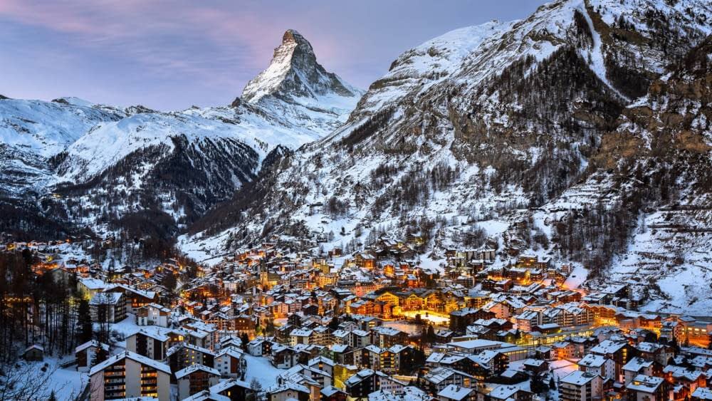 Zermatt, al pie del Matterhorn, es un destino de montaña sin igual, conocido por su ambiente libre de autos y su lujo discreto. El Mont Cervin Palace, con tarifas desde 900 euros por noche, ofrece suites con balcones privados, un spa con piscina climatizada y acceso a más de 360 km de pistas de esquí.