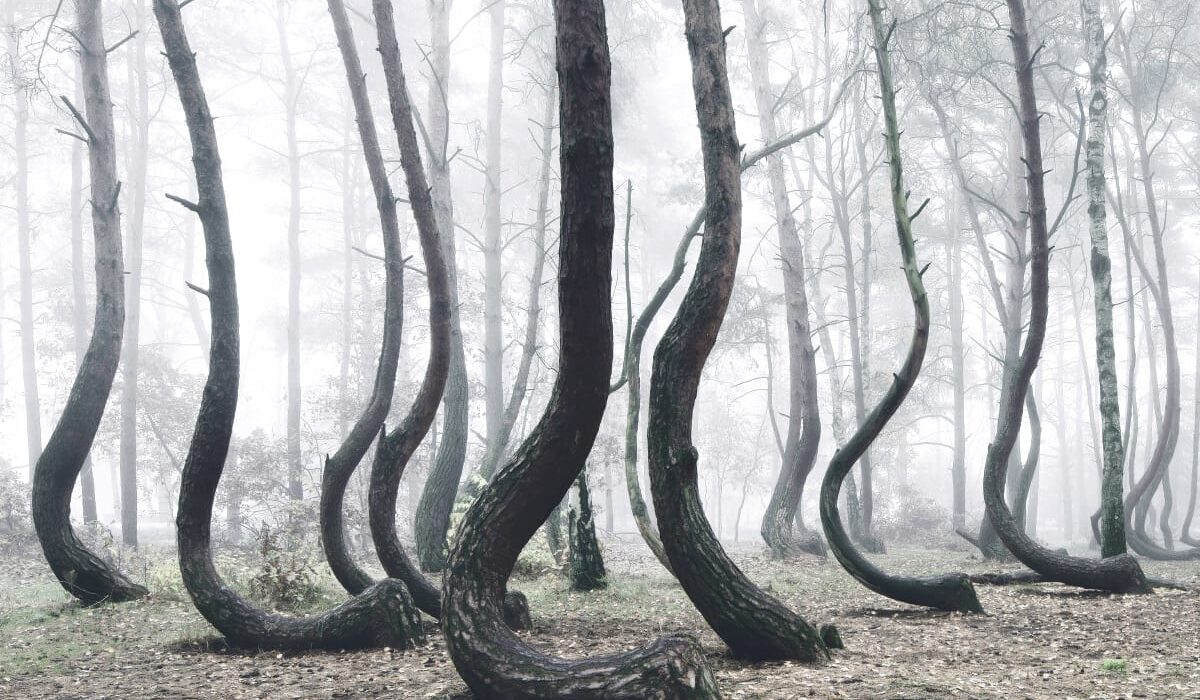 Crooked Forest, en Gryfino, Polonia, es un bosque de 400 pinos de 80 años doblados en ángulos imposibles, como si una fuerza sobrenatural los torciera, susurrando teorías de vientos mágicos o rituales paganos del siglo XVIII.