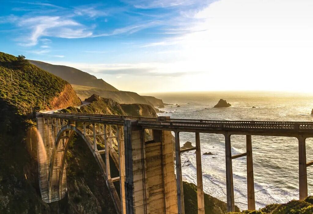 Este clásico de California es probablemente el viaje costero más famoso del continente, y con razón. El tramo entre San Francisco y Los Ángeles por la Highway 1 regala vistas de acantilados dramáticos, el puente Bixby en Big Sur, pueblos como Carmel-by-the-Sea y playas donde puedes ver elefantes marinos descansando.